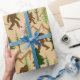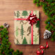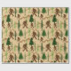 Enveloppement cadeau sur le thème de la fête de Bigfoot à motifs avec des Bigfoots errant à travers les forêts de pins et les montagnes