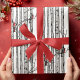 Ce papier d'emballage de saison hivernale et de vacances moderne présente des bouleaux dessinés à la main avec des oiseaux cardinaux rouges perchés sur des branches à l'encre noire, contre un élégant arrière - plan blanc.