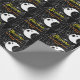 Papier à envelopper avec "Attention" et texte personnalisé Black avec White Spider Webs et mignon moderne Ghost Fun et Friendly Friendly Halloween Party / Haunted House Party.