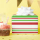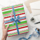 Cette décoration aux couleurs de Noël est ornée d'un motif rayé vert, blanc et rouge. Il peut être amusant d'utiliser du papier d'emballage comme celui-ci lors de la préparation de cadeaux ou de cadeaux qui sont donnés pour célébrer un anniversaire, un mariage, un anniversaire ou un autre événement.