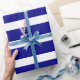 Papier Cadeau Bleu blanc classique Horizontal rayé