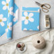 Un design marguerrier assez simple en blanc sur un arrière - plan bleu avec un élégant centre doré.