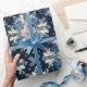 Bleu Céltic Snowflakes sur un bleu foncé arrière - plan et étoiles rétro or - parfait pour Noël OU Toutes les occasions emballage cadeau