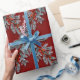 Papier Cadeau Bleu Épinette Bleu Baies rouges Lattice Rouge fonc