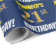 Ce design papier d’emballage comporte un message comme "JENNIFER’S 21st BANTHDAY!", avec le "21st" ayant une apparence de couleur fausse/imitation or, et avec le nom et "BANTHDAY" dans une police amusante et audacieuse. Le nom est personnalisable, et l'arrière - plan est de couleur bleue. Un papier comme celui-ci pourrait peut-être être utilisé pour envelopper les cadeaux d'anniversaire donnés à quelqu'un pour célébrer son vingt et unième anniversaire. [~Z0000209]