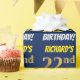 Ce design papier d’emballage comporte un message comme "22e anniversaire de RICHARD!", avec le "22e" ayant une apparence de couleur fausse/imitation or, et avec le nom et "anniversaire" dans une police amusante et audacieuse. Le nom peut être personnalisé, et l'arrière - plan est de couleur bleue. Un papier comme celui-ci pourrait peut-être être utilisé pour envelopper les cadeaux d'anniversaire donnés à quelqu'un pour célébrer son vingt-deuxième anniversaire. [~Z0000209]
