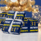 Papier Cadeau Bleu, Faux/Imitation Or, "31e ANNIVERSAIRE"