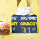 Ce design papier d’emballage comporte un message comme "31e anniversaire de SAMANTHA!", avec le "31e" ayant une apparence de couleur fausse/imitation or, et avec le nom et "ANNIVERSAIRE" dans une police amusante et audacieuse. Le nom peut être customisé, et l'arrière - plan est de couleur bleue. Un papier comme celui-ci pourrait peut-être être utilisé pour envelopper les cadeaux d'anniversaire donnés à quelqu'un pour célébrer leur trente et unième anniversaire. [~Z0000209]