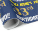 Ce papier d’emballage comporte un message comme "FIRST-NAME’S 33rd BANTHDAY!", avec le "33rd" ayant une apparence de couleur fausse/imitation or, et avec le nom et "BANTHDAY" dans une police amusante et audacieuse. Le nom peut être customisé, et l'arrière - plan est de couleur bleue. Un papier comme celui-ci pourrait peut-être être utilisé pour envelopper les cadeaux d'anniversaire donnés à quelqu'un pour célébrer leur trente-troisième anniversaire. [~Z0000209]