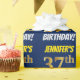 Ce design papier d’emballage comporte un message comme "37e anniversaire de JENNIFER!", avec le "37e" ayant une apparence de couleur fausse/imitation or, et avec le nom et "ANNIVERSAIRE" dans une police amusante et audacieuse. Le nom peut être personnalisé, et l'arrière - plan est de couleur bleue. Un papier comme celui-ci pourrait peut-être être utilisé pour envelopper les cadeaux d'anniversaire donnés à quelqu'un pour célébrer leur trente-septième anniversaire. [~Z0000209]