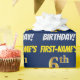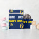 Ce papier d’emballage comporte un message comme "FIRST-NAME’S 6th BIRTHDAY!", avec le "6th" ayant une apparence de couleur fausse/imitation or, et avec le nom et "BIRTHDAY" dans une police amusante et audacieuse. Le nom peut être customisé, et l'arrière - plan est de couleur bleue. Un papier comme celui-ci pourrait peut-être être utilisé pour envelopper les cadeaux d'anniversaire donnés à quelqu'un pour célébrer leur sixième anniversaire. [~Z0000209]