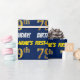 Ce papier d’emballage comporte un message comme "FIRST-NAME’S 79th BIRTHDAY!", avec le "79th" ayant une apparence de couleur fausse/imitation or, et avec le nom et "BIRTHDAY" dans une police amusante et audacieuse. Le nom peut être customisé, et l'arrière - plan est de couleur bleue. Un papier comme celui-ci pourrait peut-être être utilisé pour envelopper les cadeaux d'anniversaire donnés à quelqu'un pour célébrer leur soixante-dix-neuvième anniversaire. [~Z0000209]