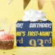 Ce papier d’emballage comporte un message comme "FIRST-NAME’S 93rd BIRTHDAY!", avec le "93rd" ayant une apparence de couleur fausse/imitation or, et avec le nom et "BIRTHDAY" dans une police amusante et audacieuse. Le nom peut être customisé, et l'arrière - plan est de couleur bleue. Un papier comme celui-ci pourrait peut-être être utilisé pour envelopper les cadeaux d'anniversaire donnés à quelqu'un pour célébrer leur quatre-vingt-treize anniversaire. [~Z0000209]