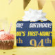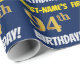 Ce papier d’emballage comporte un message comme "FIRST-NAME’S 94th BIRTHDAY!", avec le "94th" ayant une apparence de couleur fausse/imitation or, et avec le nom et "BIRTHDAY" dans une police amusante et audacieuse. Le nom peut être customisé, et l'arrière - plan est de couleur bleue. Un papier comme celui-ci pourrait peut-être être utilisé pour envelopper les cadeaux d'anniversaire donnés à quelqu'un pour célébrer son quatre-vingt-quatorzième anniversaire. [~Z0000209]