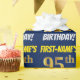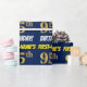 Ce papier d’emballage comporte un message comme "FIRST-NAME’S 95th BIRTHDAY!", avec le "95th" ayant une apparence de couleur fausse/imitation or, et avec le nom et "BIRTHDAY" dans une police amusante et audacieuse. Le nom peut être personnalisé, et l'arrière - plan est de couleur bleue. Un papier comme celui-ci pourrait peut-être être utilisé pour envelopper les cadeaux d'anniversaire donnés à quelqu'un pour célébrer son quatre-vingt-quinzième anniversaire. [~Z0000209]