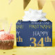 Ce design papier d'emballage comporte un message comme "HAPPY 34th BIRTHDAY", avec le "34th" ayant une apparence fausse/imitation or. Il porte également un nom personnalisé et un arrière - plan de couleur bleue. Il pourrait peut-être être utilisé pour envelopper les cadeaux donnés pour le trente-quatrième anniversaire de quelqu’un. [~Z0000135]
