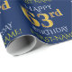 Ce design papier d'emballage comporte un message comme "HAPPY 63rd BANTHDAY", avec le "63rd" ayant une apparence fausse/imitation or. Il comporte également un nom personnalisé et un arrière - plan de couleur bleue. Il pourrait peut-être être utilisé pour envelopper les cadeaux donnés pour le soixante-troisième anniversaire de quelqu’un. [~Z0000135]