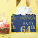 Ce design papier d'emballage comporte un message comme "HAPPY 64th BIRTHDAY", avec le "64th" ayant une apparence fausse/imitation or. Il comporte également un nom personnalisable et un arrière - plan de couleur bleue. Il pourrait peut-être être utilisé pour envelopper les cadeaux donnés pour le soixante-quatrième anniversaire de quelqu’un. [~Z0000135]