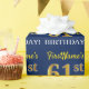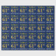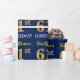 Ce design papier d’emballage comporte un message comme "61e ANNIVERSAIRE de FirstName!", le "61e" ayant une apparence de couleur fausse/imitation or. Le nom peut être customisé, et l'arrière - plan est de couleur bleue. Il pourrait peut-être être utilisé pour envelopper les cadeaux donnés pour le soixante et unième anniversaire de quelqu’un. [~Z0000181]