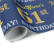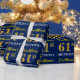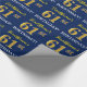 Papier Cadeau Bleu, Imitation Or Look "61ème anniversaire"