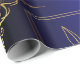 Ce papier d'emballage présente un design botanique moderne et minimaliste, avec des contours délicats en feuilles d'or encadrés à l'intérieur de frontières géométriques. Contre un riche arrière - plan à double ton bleu et noir dégradé, les accents dorés complexes ajoutent une touche de sophistication et de luxe. Les fleurissements ornementaux dans les coins rehaussent l'atmosphère générale du design, ce qui le rend parfait pour des occasions formelles, des cadeaux de luxe ou des célébrations élégantes. Le contraste de l'arrière - plan audacieux avec les détails dorés finement crée un effet visuel saisissant, idéal pour ceux qui recherchent une élégance sobre.