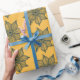 Papier Cadeau Bleu prussien sur Fleurs Sketchy Jaunes
