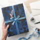 Papier Cadeau Bleu Royal, Noir et Fleurs Argentées
