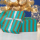 Papier cadeau bleu turquoise et or rayé avec de jolies rayures bleu turquoise et or.