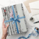 Papier Cadeau Bleus, grands bouleaux et oiseaux cardinaux rouges