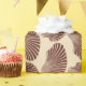 Papier enveloppé dans un motif imprimé en bloc, à base d'une coquille de pétoncle, en chocolat foncé sur un arrière - plan beige