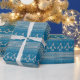 Arrière - plan tricoté bleu avec pingouins. Illustration du vecteur. © et ® Bigstock® - Tous droits réservés.