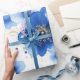 Papier Cadeau Blue Floral Pattern with Gold Accents