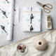Notre emballage cadeau pour le patinage sur glace Blue Snowflakes présente la silhouette noire d'un patineur artistique entouré de flocons de neige bleus.