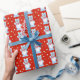 Papier Cadeau Blue Teddy Bears on red background