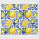 Papier Cadeau Blue White Lemon Tile Pattern Mediterranean Citrus