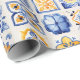Papier Cadeau Blue White Yellow Tiles Pattern Summer Aesthetic