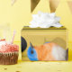 Une paire de bleuets de l'est font leur maison dans une mignonne maison d'oiseaux jaunes dans un beau jardin de printemps rempli de marguerites bleues et jaunes et entouré de bois de chien en fleurs. Des papillons orange et bleus viennent également visiter les fleurs.