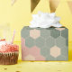 Ce papier d'emballage élégant présente un motif géométrique boho de formes hexagonales vintages dans une palette de couleurs modernes de bleu marine, vert forestier, rose roux et jaune moutarde. Super idée cadeau.