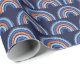 Ce papier d'emballage mignon et capricieux présente un arc-en-ciel bohème bleu et orange sur un arrière - plan bleu marine.