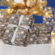 Papier Cadeau Bois de grange rustique, flocons d'argent glacé