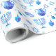 Joyeux Hanoukka Party Bleu Décoration, Fête Juive, Papier Enveloppant. Arrière - plan juif de Holiday Hanoukka avec symboles traditionnels de Chanoukah - dandelles en bois (dessus filant), beignets, menorah or, bougies, étoile de David et motif de papier peint aux lumières bleues. Décoration de l'événement du Festival Hanoukka. Jérusalem, Israël. Articles d'artisanat et de fête > Articles d'emballage de cadeaux > Papier d'emballage. Conception avec modèle texte. Personnalisez-les en ajoutant ou en modifiant du texte.