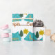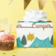 Super mignon camping et glamping Happy Camper logo design en bleu turquoise, vert, brun, orange et jaune.