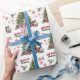 Le motif répété sur ce papier d'emballage de Noël comprend l'image d'un adorable chiot en noir et blanc de Border Collie regardant d'un panier en osier. La corbeille est décorée d'un arc rouge vif et se trouve à côté d'un arbre de Noël. Le texte rouge et vert stylisé dit MERRY CHRISTMAS", et votre propre signature est dans deux champs pour vous de customiser. Parmi les autres images incluses dans la motif, on trouve des flocons de neige décoratifs rouges, des sucres de canne et une lolly pop menthe poivrée.