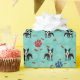 Un chien de Boston Terrier avec un éparpillement d'os et de pistes de pattes. Cette conception est destinée à la tuile de manière transparente.