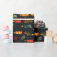 Papier d'emballage festif joyeux avec un motif de bougies colorées sur un arrière - plan noir.