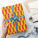 Rapportez à des souvenirs avec des ces les rétros bouteilles de ketchup et de moutarde de wagon-restaurant. Le motif des bouteilles rouges et jaunes classiques de condiment sur ce papier d'emballage a un arrière - plan orange.