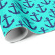 Papier Cadeau Bright Aqua, Motif Ancres bleu marine