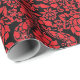 Festif et élégant papier d'emballage de vacances avec motif à damas floral en rouge sur arrière - plan noir
