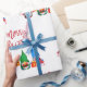 Script de brosse moderne Joyeux Noël Coloré Amusant Aquarelle Gnomes Papier d'enveloppement - Script rouge