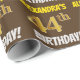 Ce design papier d’emballage comporte un message comme "44e anniversaire d’ALEXANDRA!", avec le "44e" ayant une apparence de couleur fausse/imitation or, et avec le nom et "ANNIVERSAIRE" dans une police amusante et audacieuse. Le nom peut être personnalisé, et l'arrière - plan est de couleur marron. Un papier comme celui-ci pourrait peut-être être utilisé pour envelopper les cadeaux d'anniversaire donnés à quelqu'un pour célébrer leur quarante-quatrième anniversaire. [~Z0000211]